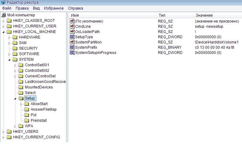 В файле реестра c:\%винда%\system32\config\system в разделе \HKLM\SYSTEM\Setup должно быть что то типа как (вложение)